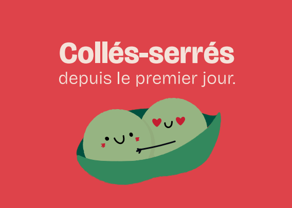 « Collés-serrés depuis le premier jour » : Deux petits pois blottis dans leur cosse ;